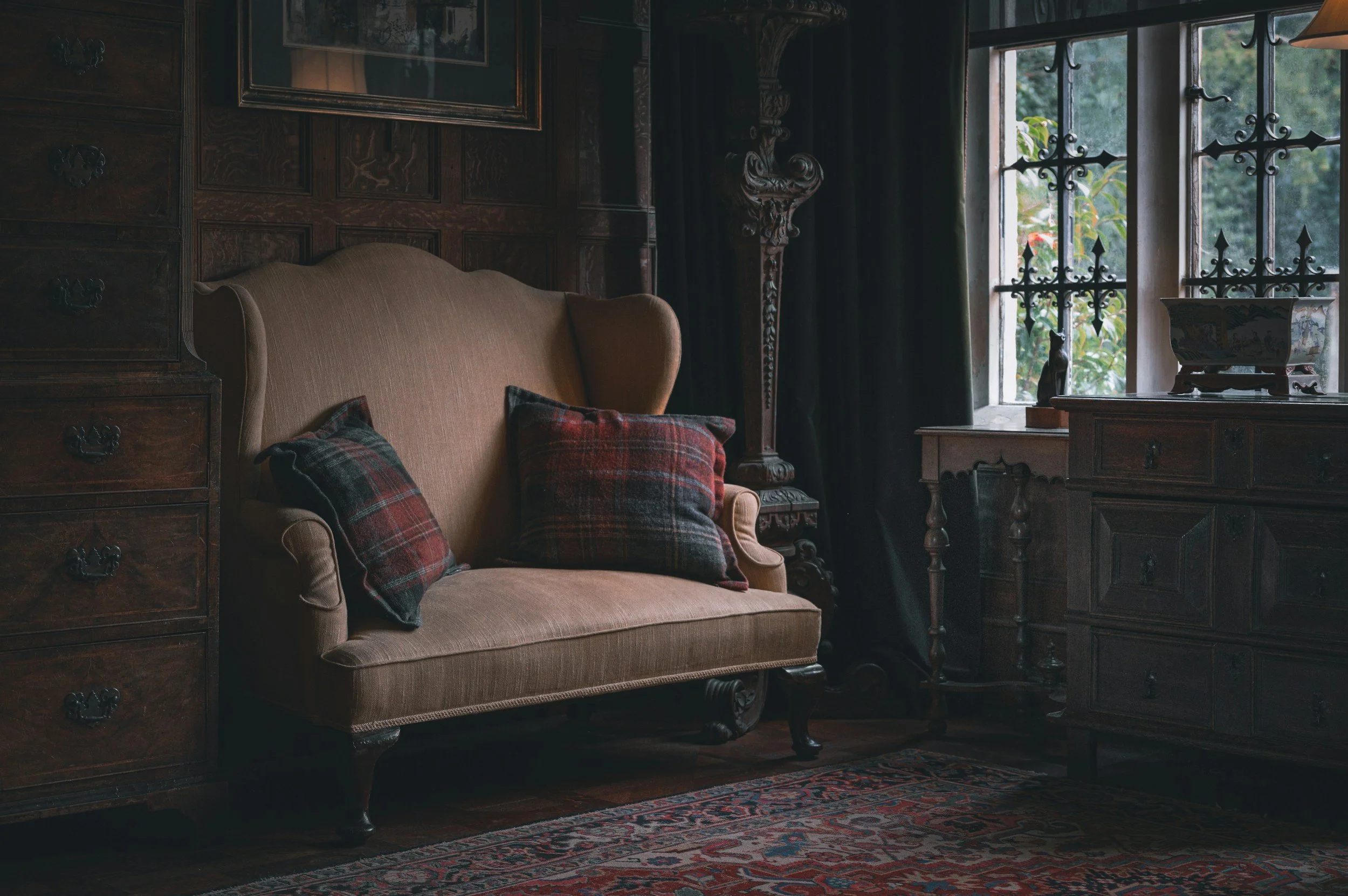 Light, both natural and artificial, is treated as a material in its own right. Daylight filtering through linen curtains softens muted walls, while carefully placed lamps highlight textures and artworks without overwhelming the atmosphere. The interplay of shadow and glow adds depth and a sense of poetry to each room.